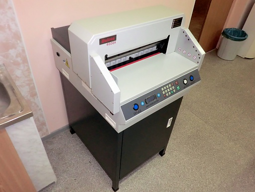 - Два резака гильотинных KW-trio 13946/3946 с ручным приводом ножа. Такое оборудование – оптимальный выбор для резки бланков, визиток, фотобумаги, прочих видов полиграфической продукции.