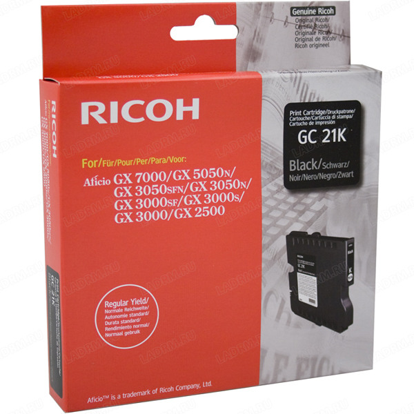 Оригинальный картридж Ricoh GC 21K черный для GX 3000S, 3000SF, 3050SFN, 2500, 3000, 3050N, 5050N, 7000 (1 500 стр) 405532