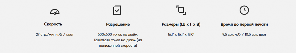 • Скорость печати до 26 страниц в минуту чёрно-белой и цветной печати формата A4