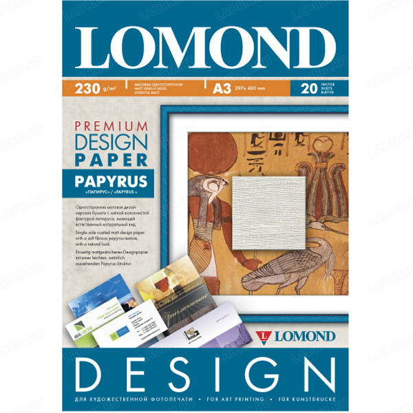Описание LOMOND 0929032 фотобумага матовая Папирус Premium А3 (297 х 420 мм) 230 г/м2, 20 листов