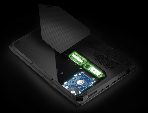 ROG Strix GL503 предлагает производительность полноразмерного игрового компьютера в корпусе толщиной всего 2,4 см. В его аппаратную конфигурацию входит четырехъядерный процессор Intel Core восьмого поколения, видеокарта NVIDIA GeForce GTX 1050 Ti и до 32 гигабайт двухканальной оперативной памяти DDR4 для комфортной игры. Вы легко можете придать своему ноутбуку ускорение, увеличив объем его оперативной памяти. Для доступа к слоту достаточно открутить один винт и сдвинуть крышку отсека на дне корпуса.