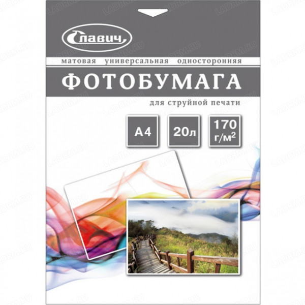 Описание СЛАВИЧ ПП170-А4-20 фотобумага "Принт Фото" матовая А4, 170 г/м2, 20 листов